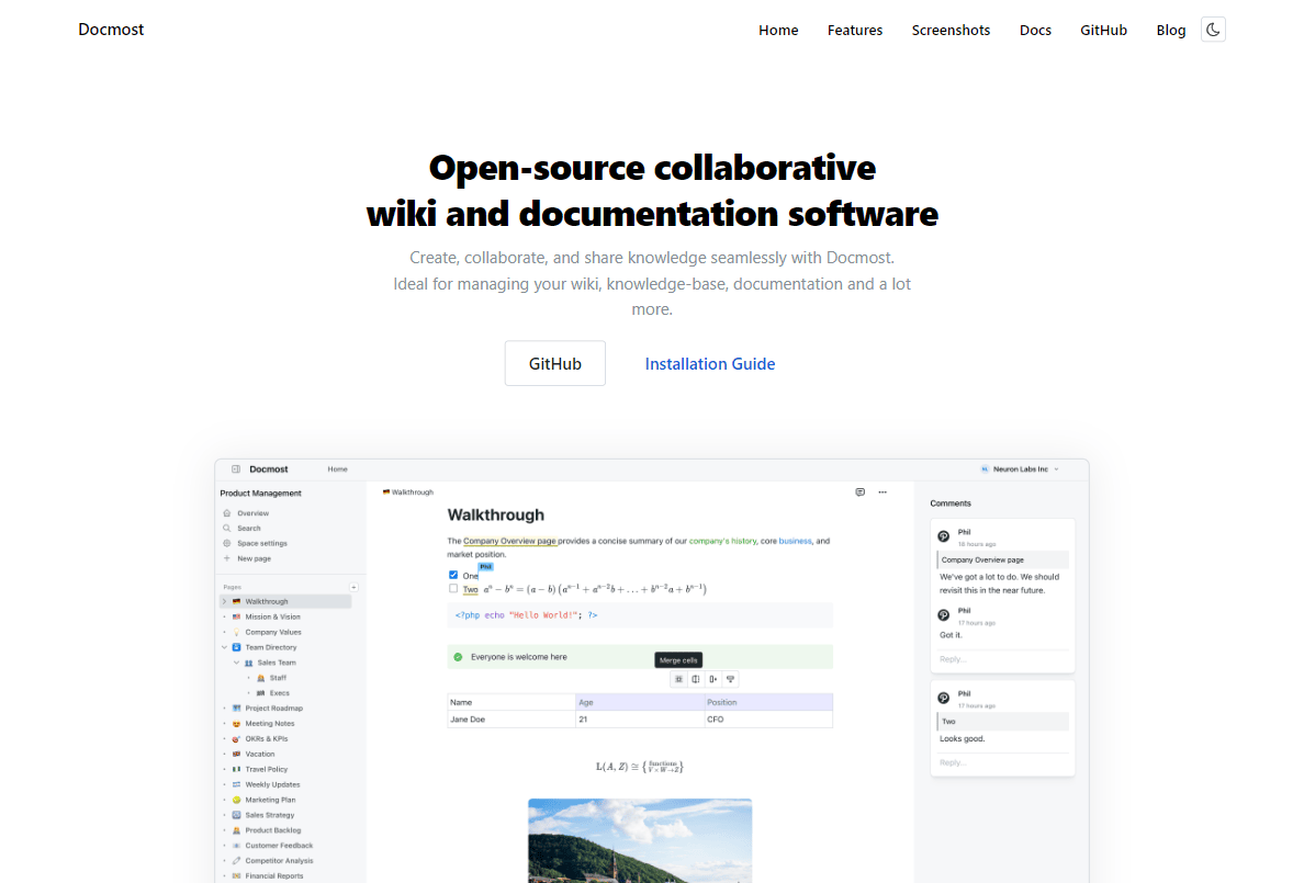 Docmost is an open-source collaborative wiki and documentation software that positions as an alternative to Notion.