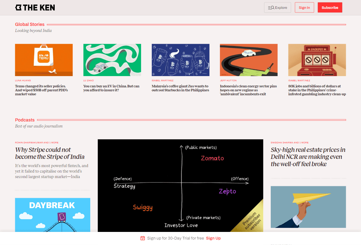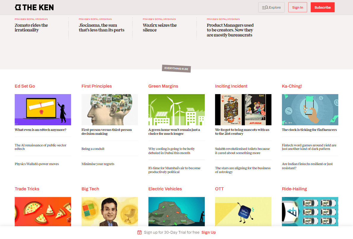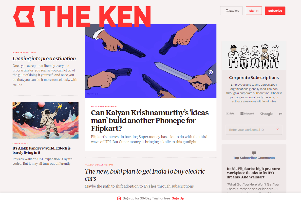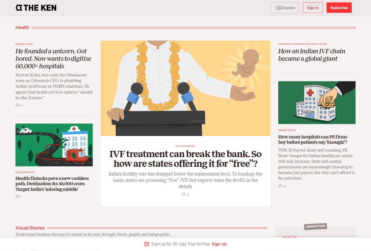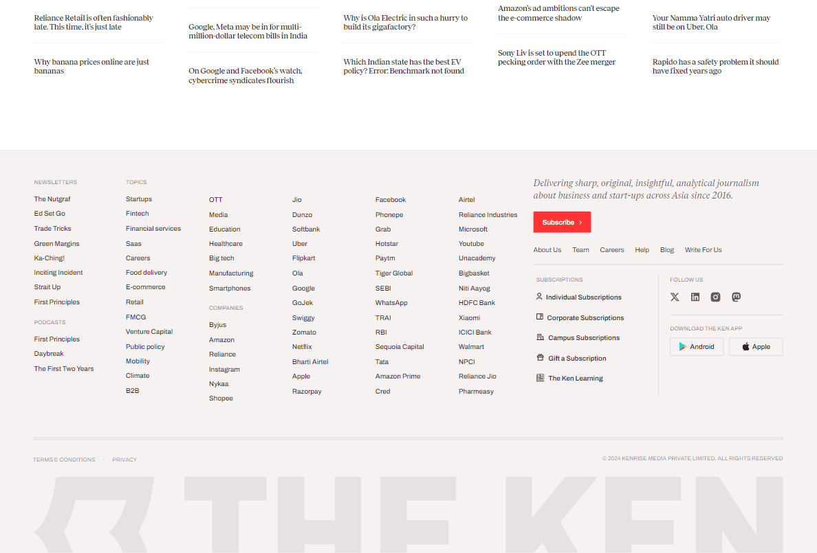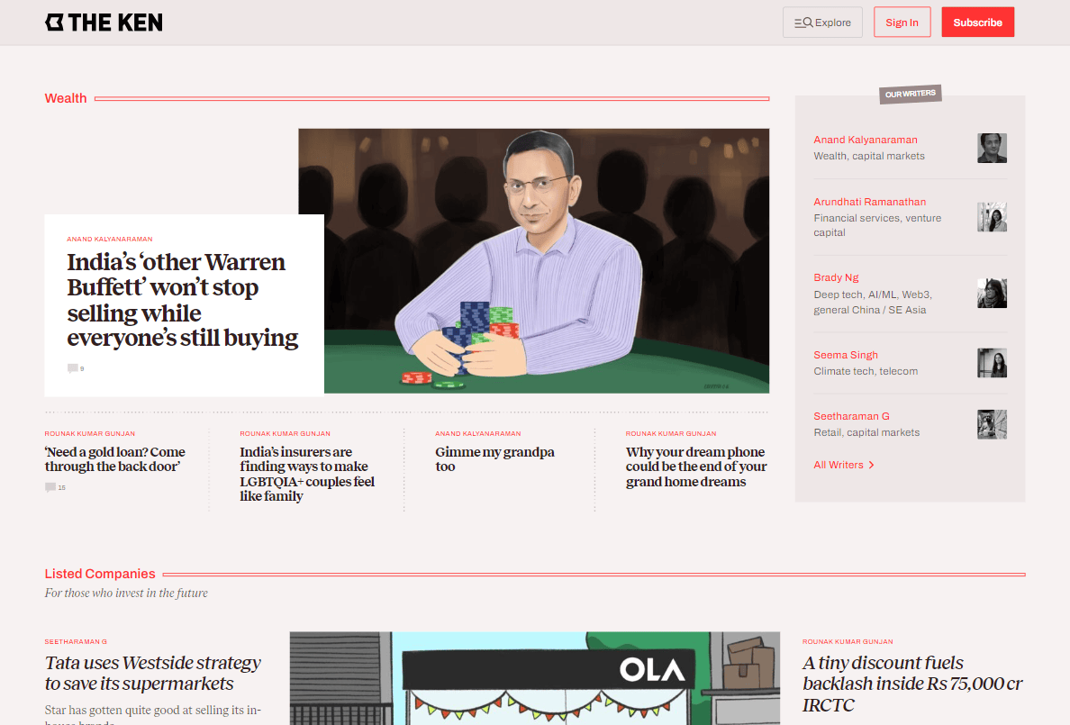 The Ken is a news websites that brings business, startup, technology, and healthcare stories from India. I loved the design and aesthetic of the website.